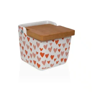 Salero Pequeño Cerámica Blanca Corazones Rojos, Vintage (9x9x8,5 cm)