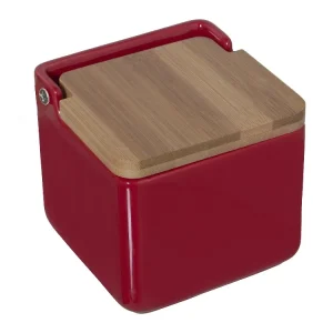 Salero Cerámica Corazones Vichy Grises y Rojos, Vintage (12x12x11,5cm)