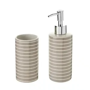 Set Baño Cerámica Beige Listas Blanca Lines (6,5dx19cm)