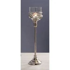 Portavelas copa cristal metal plata hojas(10dx37cm)