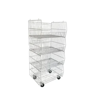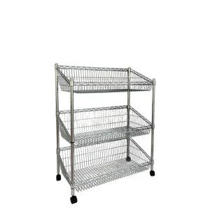 Estantería tubo bambú con 3 cestas inclinadas 46x91cm con ruedas