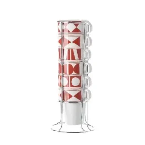 Set 6 Tazas Té Corazones Grises y Rojos, Vintage (14x9x14cm)