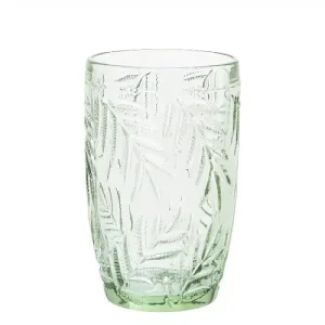 Set 6 Vasos Cristal Verde Hojas Grabadas Romántico (8 dx12,5 cm)