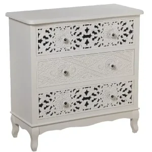 Cómoda Lacada Blanca Cajones Calados Cécile, Provenzal (75x34x76 cm)