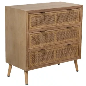 Cómoda Madera Abeto Ratán Malena, Nórdica (78x40x79 cm)