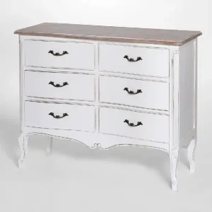 Cómoda de Seis Cajones Blanca y Natural Cécile, Provenzal (100x40x83 cm)