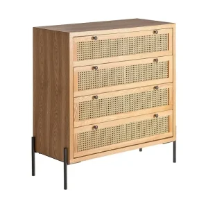 Cómoda Madera Natural Ratán 4 Cajones, Chiara (80x40x80 cm)