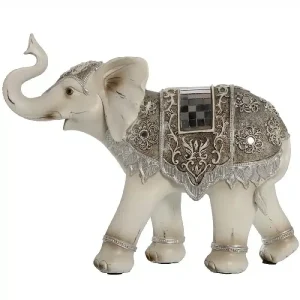 Figura Resina Elefante Beige y Dorado con Grabados (33x13x23cm)