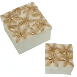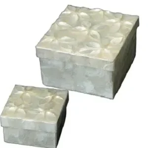 Set 2 Cajas Nácar Blanco Flor Relieve Bitono (13x13x8cm)