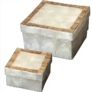 Set 2 Cajas Nácar Blanco Filo Beige (13x13x8cm)