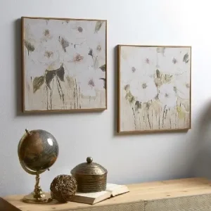 Set 2 cuadros flores blancas sobre fondo beige (2M 40x2x40cm)