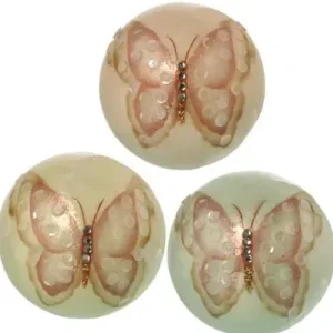 Set 3 bolas decoración nácar-lentejuelas mariposas (10d cm)