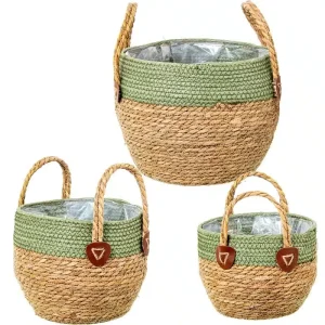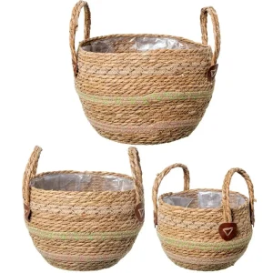 Set Tres Cestas Fibra Trenzada Natural-Verde, Nature (30dx30 cm)