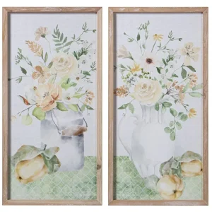 Set Dos Cuadros Jarrones con Flores Multicolor, Vintage (30x2x60cm)