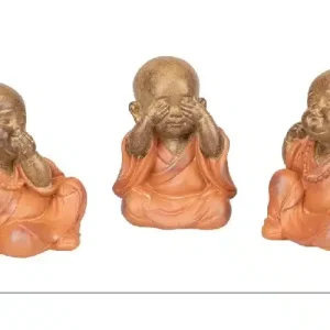 Set 3 Budas Resina Dorada Túnica Terracota (9x7x11cm)