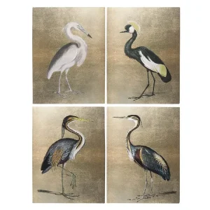 Set Cuatro Cuadros Garzas Multicolor-Dorado, Clásico (4M 30x2x40 cm)
