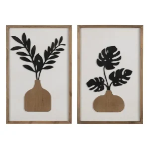 Set Dos Cuadros Jarrones con Relieve de Madera (40x2x60 cm)