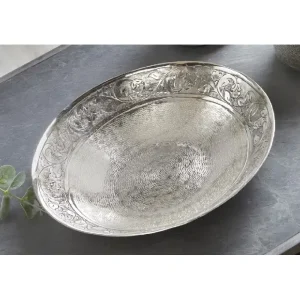 Centro Aluminio Grabado Plata Cenefa Hojas Selene (32dx6 cm)