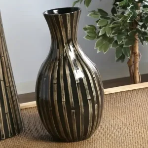 Jarrón Cerámica Ondulada Oro Akan ( 19dx50 cm)
