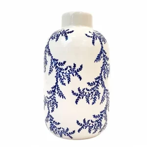 Jarrón Cerámica Blanca Ramas Azules (24dx40 cm)