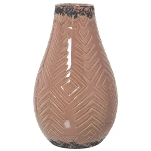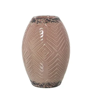 Jarrón Cerámica Rosa Esmaltada Grabados Geométricos (15dx21 cm)