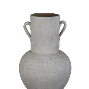 Jarrón Cerámica Blanco Envejecido Crètaro, Rústico ( 25dx40 cm)
