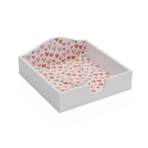 Servilletero Madera Blanca y Corazones Rojos (18x18x7cm)