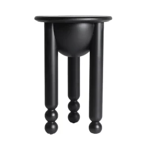 Mesita Auxiliar Redonda Abedul Negro Molduras, Zwart (38dx57 cm )