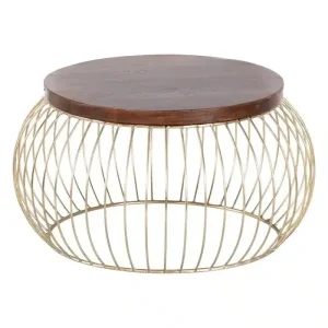 Mesa Auxiliar Redonda Mango y Metal Dorado Art Deco (61dx33cm)