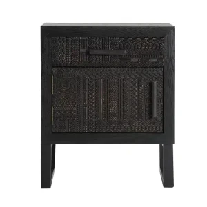 Mesita de Noche Negra Grabados Geométricos, Cairo (45x35x55 cm)