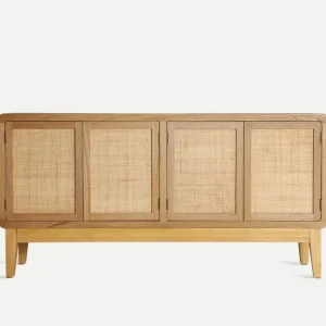 Aparador Madera Abeto Ratán Malena, Nórdico (160x40x80 cm)