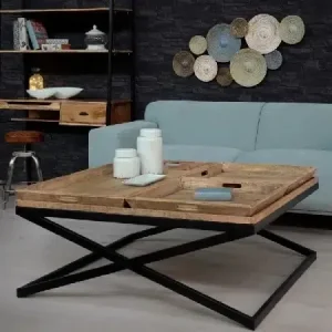 Mesa centro-bandeja madera metal(120x120x55cm)