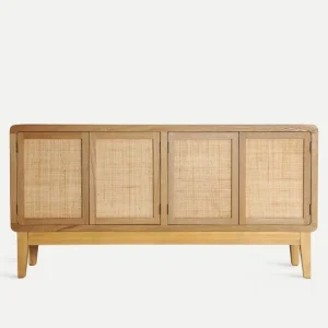 Mueble TV en Madera Abeto y Ratán Malena, Nórdico (160x40x63cm)