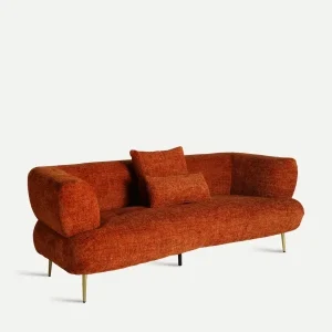 Sofá Tres Plazas Naranja Nidelva, Art Decó (215x94x80 cm)