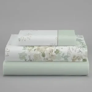 Juego Sábanas Cenefa Flores Verdes Ezzo (135 cm)