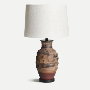 Lámpara Mesa Cerámica Marrón Rombos Grabados Basile, Rústica (28dx44 cm)