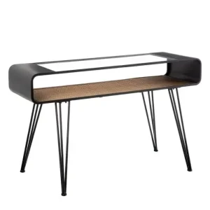 Consola ratán-metal negro ,industrial (120x40x73cm)