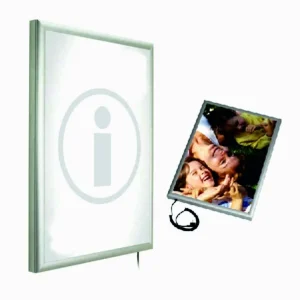 Portacartel marco con luz apertura frontal aluminio a2