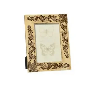 Portafotos madera natural grabada flor (20x25cm)