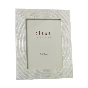 Portafotos Nácar Blanco Grabados Ondas (15×20 cm)