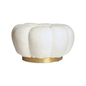 Puf Redondo Rizo Blanco-Oro Bloom, Art Decó (60dx32cm)