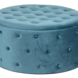 Puf Zapatero Redondo Terciopelo Azul Capitoné (80dx42 cm)