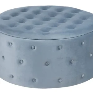 Puf Zapatero Redondo Terciopelo Azul Claro Capitoné (80dx42 cm)