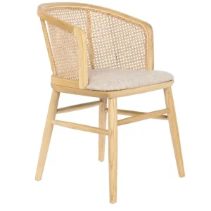 Set 2 Sillas Madera de Olmo-Rejilla con Lino Beige, Valentina (62x55x70 cm)