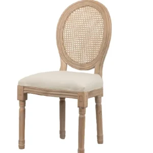 Silla Medallón Roble Rejilla Lino Beige, Estilo Isabelino (50x53x96 cm)