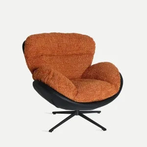 Sillón Giratorio Negro Tapizado Bouclé Naranja Mosa, Contemporáneo (100x97x95 cm)