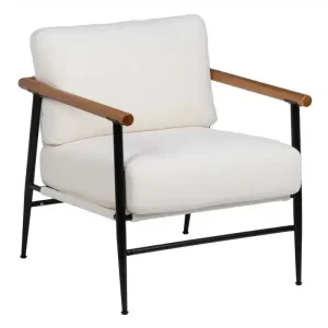 Sillón Metal y Madera Tejido Rizo Blanca Harlem, Contemporáneo ( 70x76x81cm)