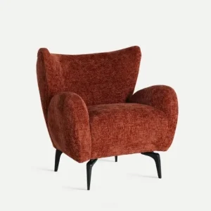 Sillón Orejero Chenilla Terracota Mosa, Contemporáneo (82x85x86 cm)