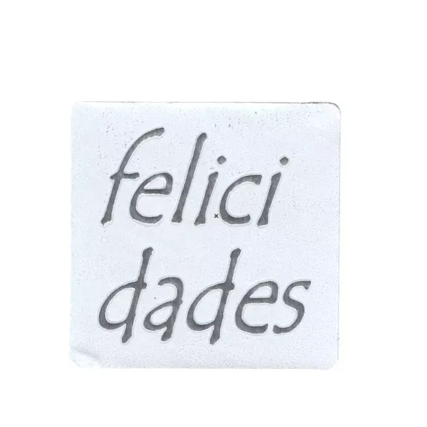 Etiqueta adhesiva fondo blanco texto plata “felicidades”