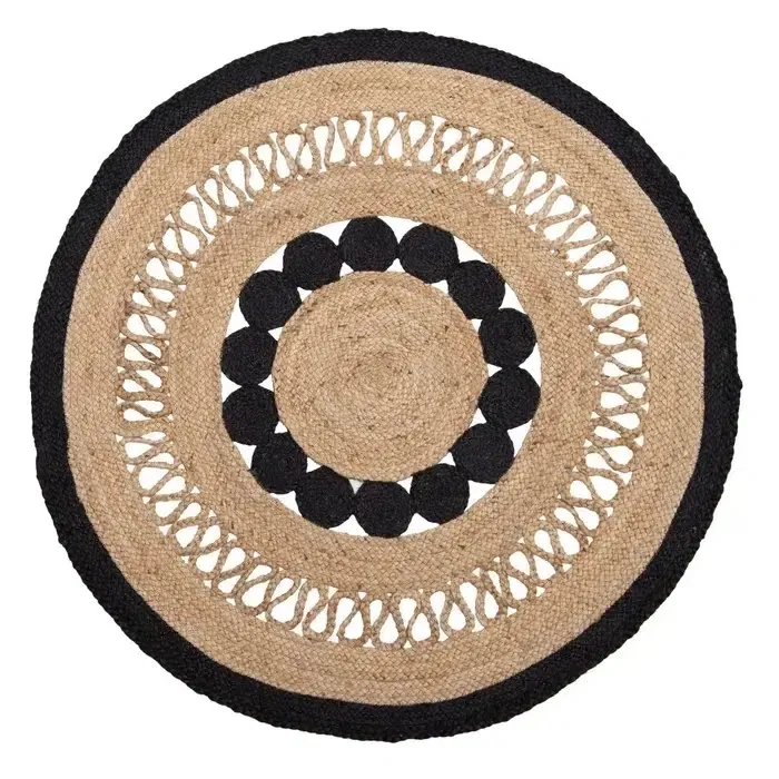 Alfombra redonda yute negra-natural